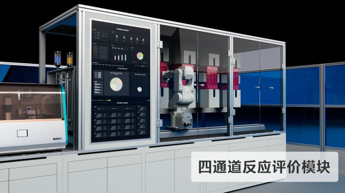 该四通道管式智能固定床反应器装置由智能装填、反应控制和检测评价三部分组成:通过直线模组精准装填物料并三维成像,自动检测气密性后启动双路配气及程序控温反应,反应气体经色谱在线分析,结束后自动冷却并由机械臂转移反应管,同时备用管可同步装料,当前换料清洗需人工操作但预留自动化接口。